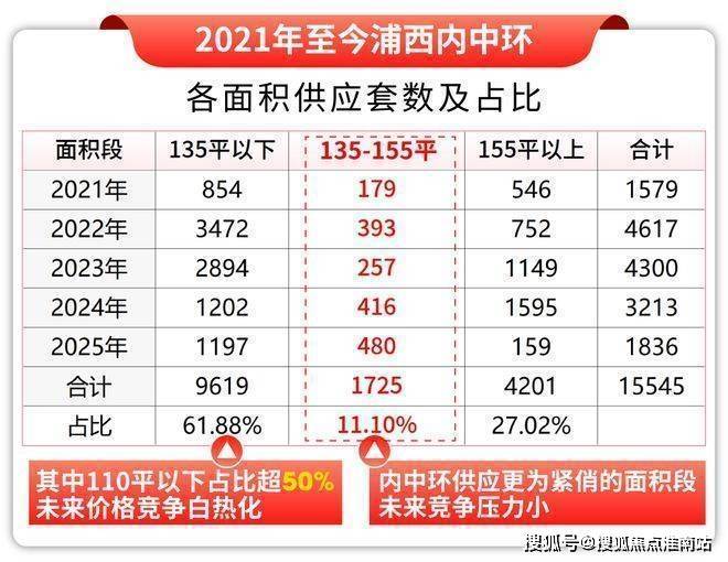 2021年至今,内中环约135-155㎡户型供应仅占比约11%。