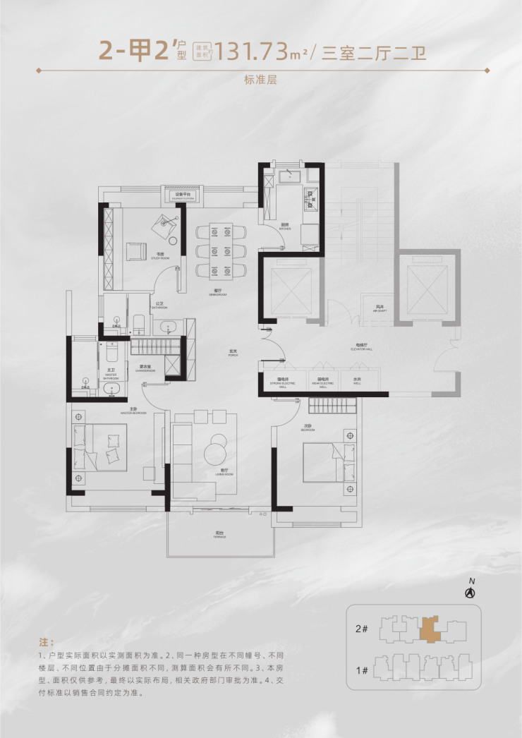 四居:建面约131.7–148.4㎡(4室2厅2卫)