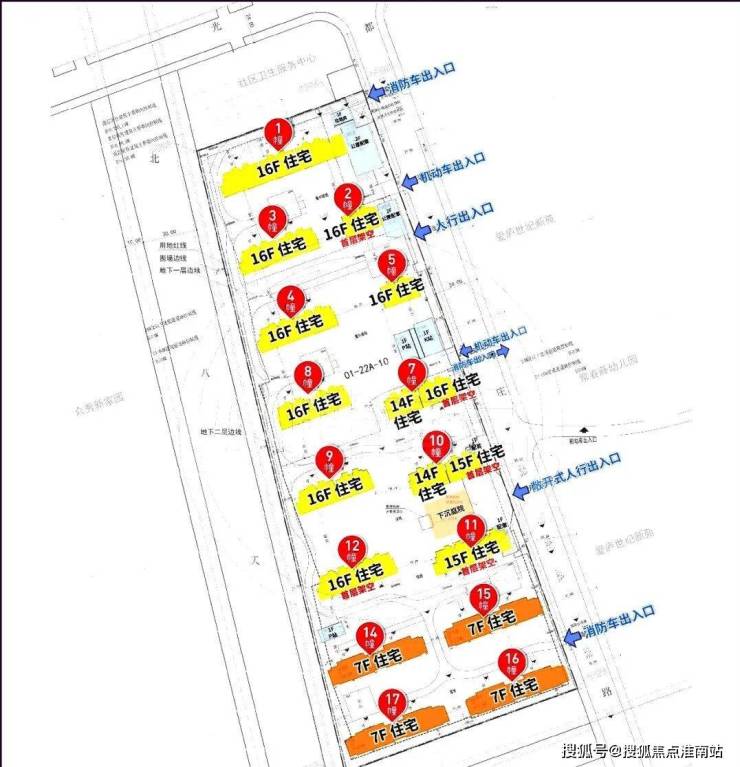 根据项目规划设计方案,项目拟建11幢14-16F高层住宅、4幢7F多层住宅以及若干社区配套用房,共计规划 约752套可售住宅;小区人车分流,规划有下沉式庭院、地下会所,2#、7#、10#、11#、12# 设置有架空层,打造泛会所空间。