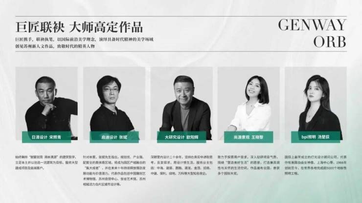 巨匠携手,联袂执笔,以国际前沿美学理念,演绎具备时代精神的美学场域,创见苏州新人文作品,致敬时代的精英人物。