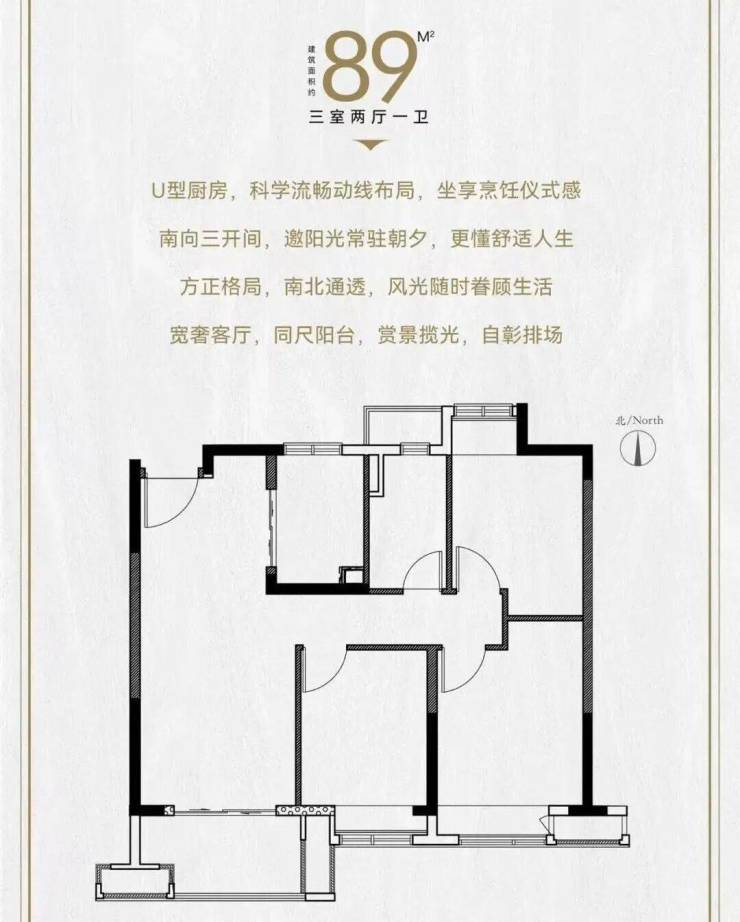 【建筑面积约89㎡三室两厅】