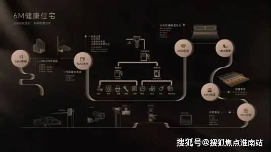 全屋配置6M健康智能住宅系统。这个智能系统系统涵盖降噪、净水、除湿、恒温、安智等多方面: