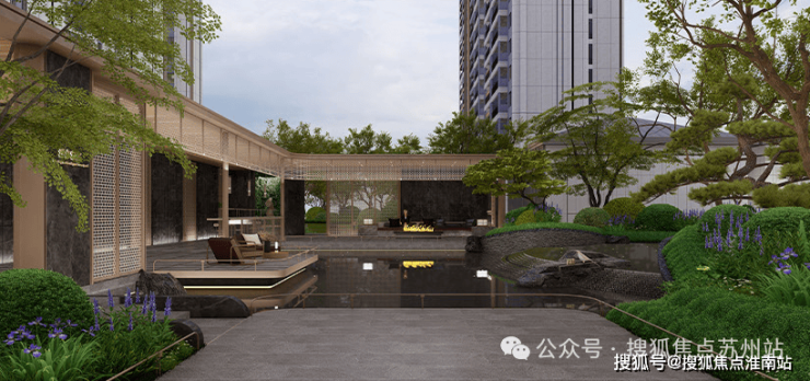 以昆山《玉山雅集图》为蓝本,师法苏州留园,“三轴一环两厅一庭五院”打造“可游、可玩、可赏、可聚”的沉漫式东方园林。
