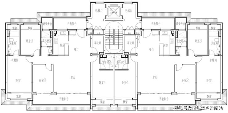 8F洋房户型,4房2厅2卫设计,全屋飘窗,南向面宽约10.2米,四开间朝南,其中3卧室均朝南,并且南向双套房。
