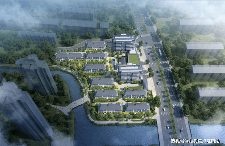根据拿地要求,该项目建筑立面要与周边区域整体风貌协调,强化建筑“第五立面”设计,立面材质以铝板、石材为主,采用透视围墙。
