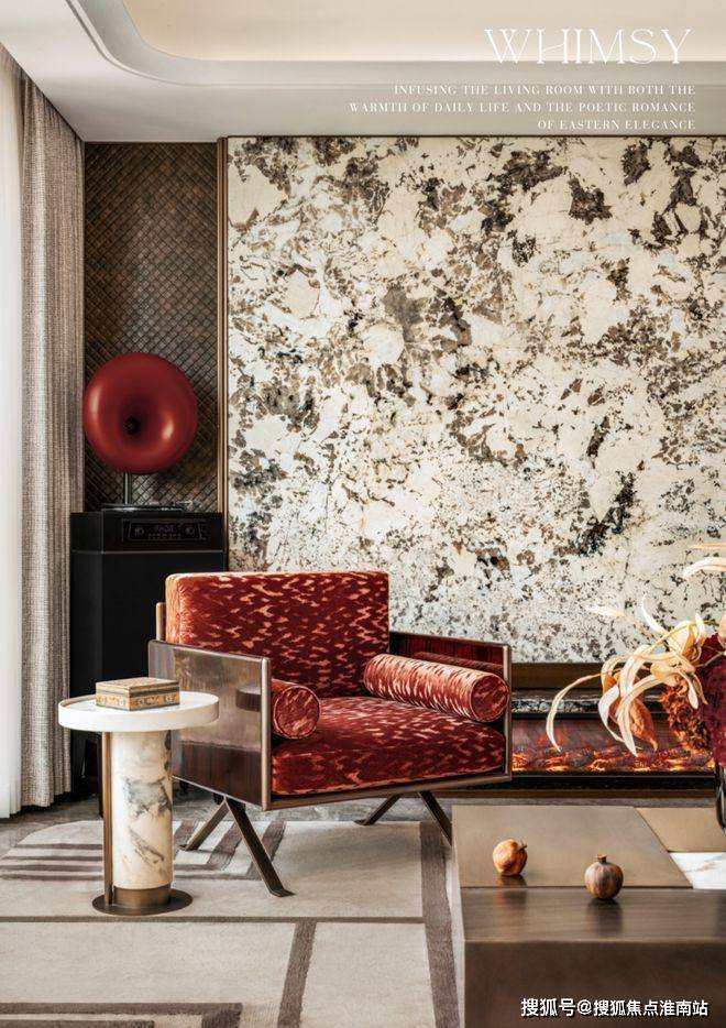 正午的阳光洒进客厅,电视背景墙深浅交错的天然纹理缓缓流淌,揣着东方雅韵的浪漫。