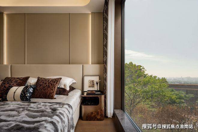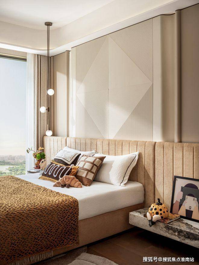 当沙湖最后的涟漪沉入暮色,主卧套房正展开一场与城市喧嚣的温柔对抗。