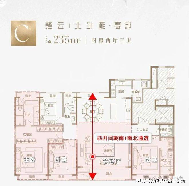 以235㎡为例:7米横厅+同宽阳台,三卧室朝南,主卧套房超30㎡19。