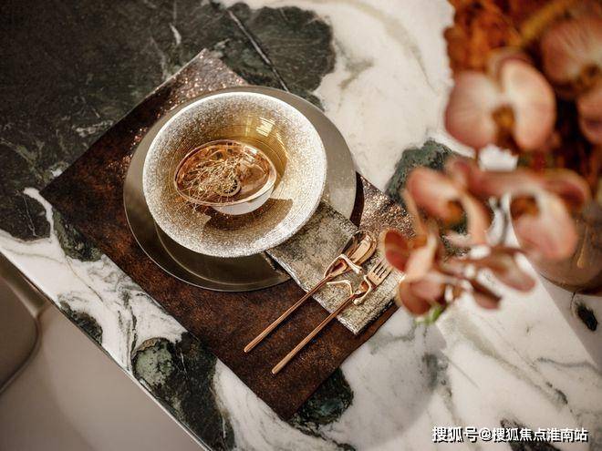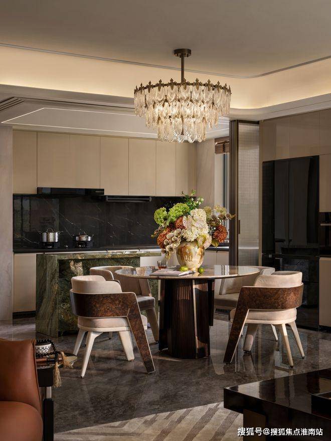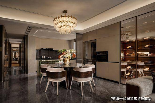 吧台的水晶吊灯折射出香槟金色的光晕,餐厅正酝酿着一场味觉与光影的私宴,演绎着城芯生活的别样格调。