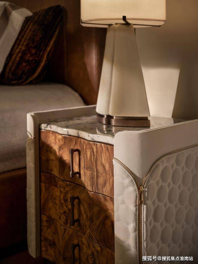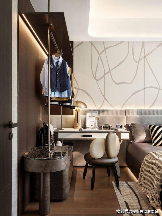 次卧皮革背景墙似被时光轻吻过的绸缎,尽是松弛高级。