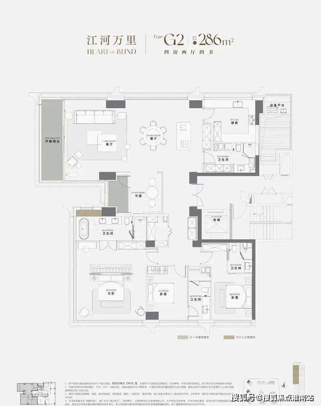 户型方面,建面约230-285㎡「环幕江景舱」,以270°无界平层结构,配合3.3米层高(部分)和全景落地窗,实现上海滨江市场罕见的IMAX环幕江景视野。而且滨江大户型采用颠覆性设计,让户型灵活可变,适配高定人生!