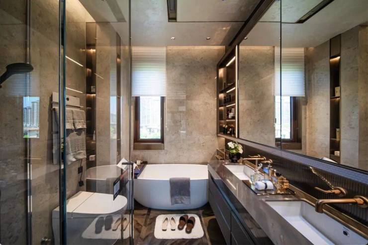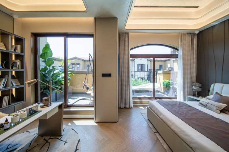 我们看到,建面约212方大户型主卧还有媲美宫殿的“穹顶式”天花板,尺度感、舒适度都让人叹为观止。