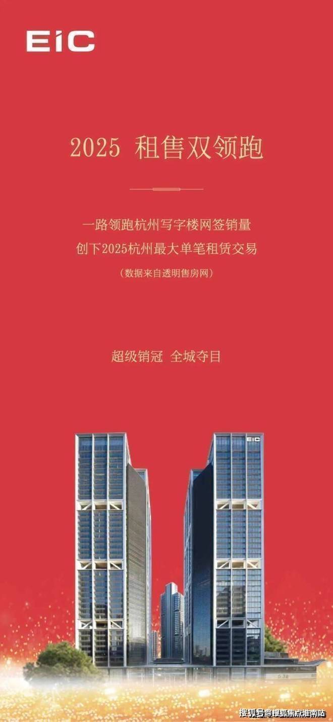 EIC超级创新城是杭州的传奇,2025开年至今,以大幅领先的优势,持续成为杭州5W+大平层网签套数、面积、金额的三项绝对冠军,杭州写字楼网签销量的绝对冠军,杭州写字楼租赁面积的绝对冠军!