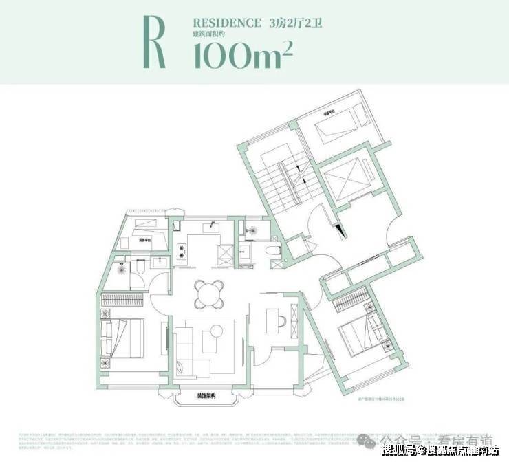 约99㎡户型设计:经典飞机户型格局!独立观景阳台!