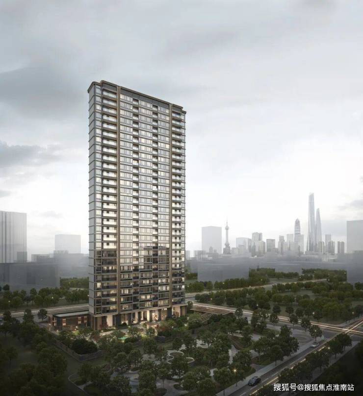 建筑外形上,采用海派现代风格,蓝灰色玻璃、仿铜色铝板、深色石材搭配,将绿城产品的高辨识度再次呈现。