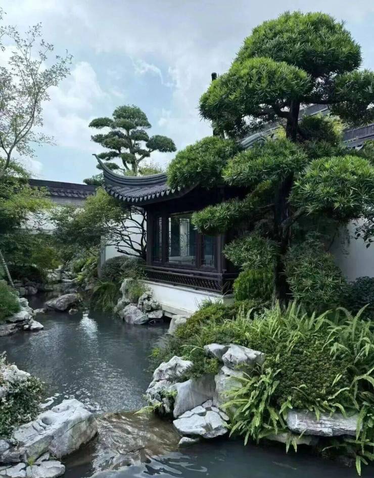 中式园林是最纯粹最理想的精神皈依之所。进入园林庭院,古朴有致,瘦漏透皱的太湖石下一方清泉涵韵其间,低头有池水如镜,抬头有瀑布如练,“水积必然龙有穴”,富贵因子已然埋藏于此。