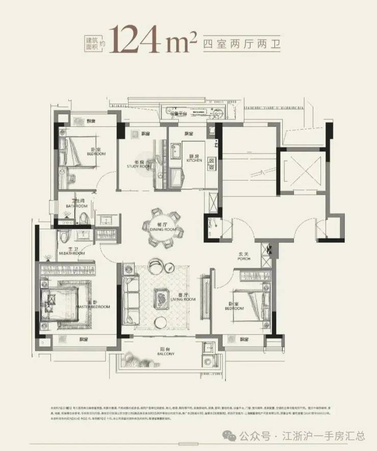 建面约124㎡的一步到位改善四房,三开间朝南设计,主、次卧互不干扰;南北通透的超大尺度公区,各种生活场景均可在此实现;得益于洋房产品属性,得房率会相对较高,功能性4房设计,无论是三代同堂或是二胎家庭即可容纳。