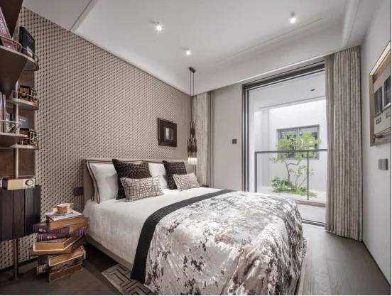同时,酒店式入户大堂溯源海派经典,融入古铜色金属格栅、海派拼花(首层和地下大堂)、海派复古压花玻璃等海派表达,让人文感满满。