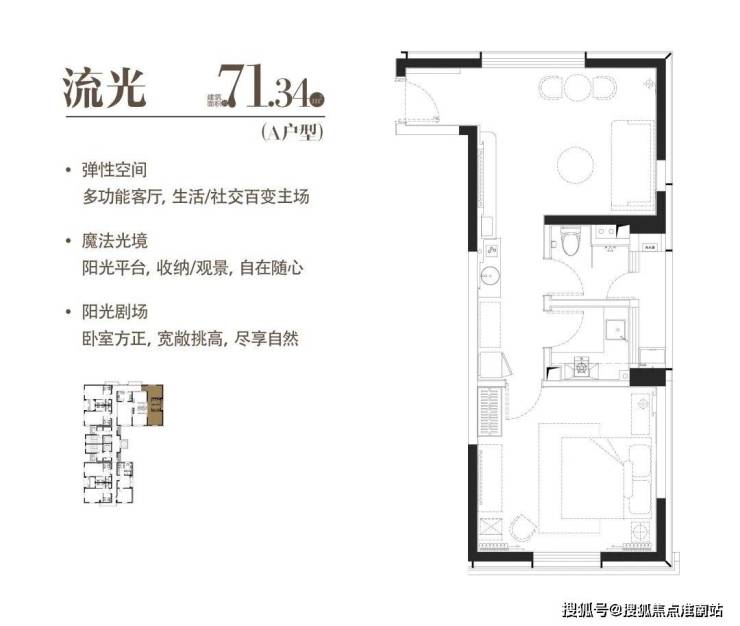 A|流光|建面约71.34m²|一室两厅一厨一卫