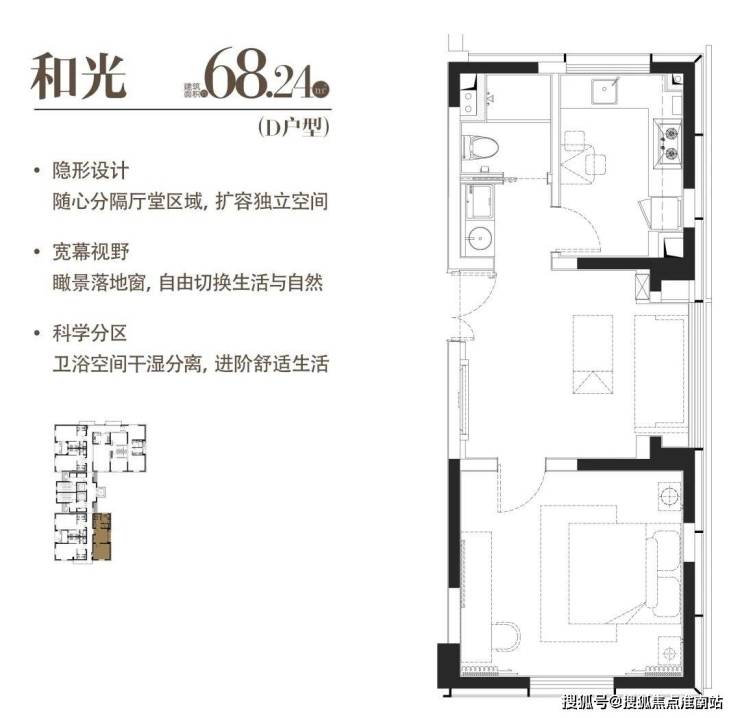 D|和光|建面约68.24m²|一室一厅一厨一卫