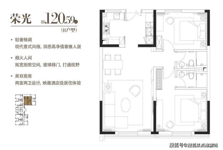 B|荣光|建面约120.59m²|两室两厅一厨两卫