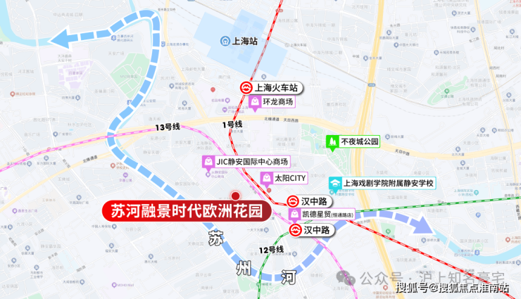 苏河融景,步行约188米1/12/13号线汉中路站!进站后2站人民广场,2站南京西路、2站北外滩!同时项目近邻东西大动脉北横通道、南北大动脉南北高架以及内环高架,自驾迅捷通勤全城!