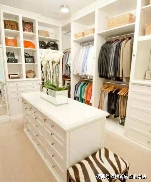 套房北侧是衣帽间位置,面积约15平,可做两排橱柜,中间再放个大大的首饰柜……