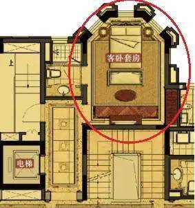 先看西侧次主卧,采用套房设计,卧室进深7米,宽5.7米,总面积近40平,南侧设有10平米的露台,可作新婚子女之住。