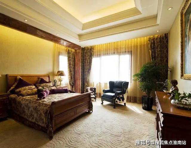 卧室位于套房南侧,面宽5.3米,进深5.1米,呈正方形,不仅适合家具摆放,风水学也认为方形卧房更利于藏风聚气,提升主人运势。