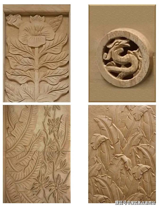 外墙上,还有各种砂岩花艺浮雕,画龙点睛,既素雅温馨,又不失华贵大气,有些可是师傅手工雕刻的。