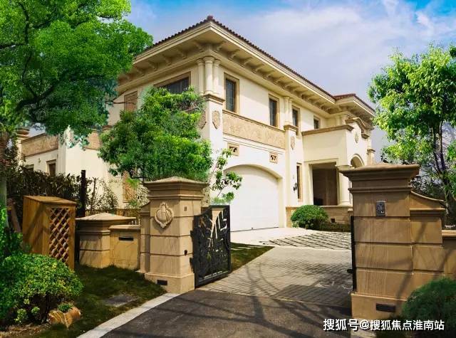航拍俯瞰,浓荫绿树,这可不是普通别墅区可比拟的,每一棵树没个几十年可长不到这尺度啊。关键是,合生东郊别墅可是在上海,内环旁哦!外立面,澳洲砂岩配以砂岩浮雕。私家大花园,近三个篮球场大小,室内电梯、室内外泳池都是标配。