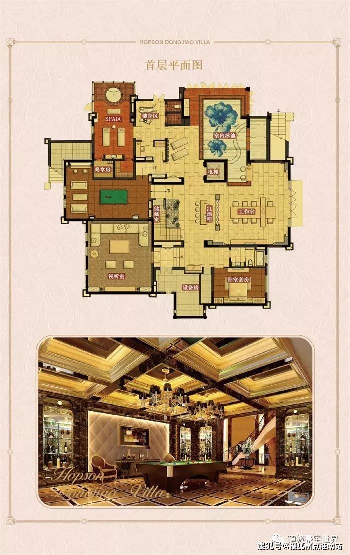 ①、A(金轩):(挑高8米,面宽8.3米,地下室内游泳池)