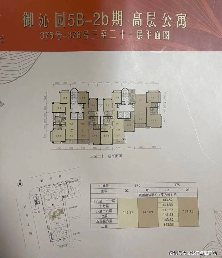 【御沁园】七期将推出3栋18F高层住宅,两梯两户无连廊设计;将推建面约132~172㎡三房户型,其中: