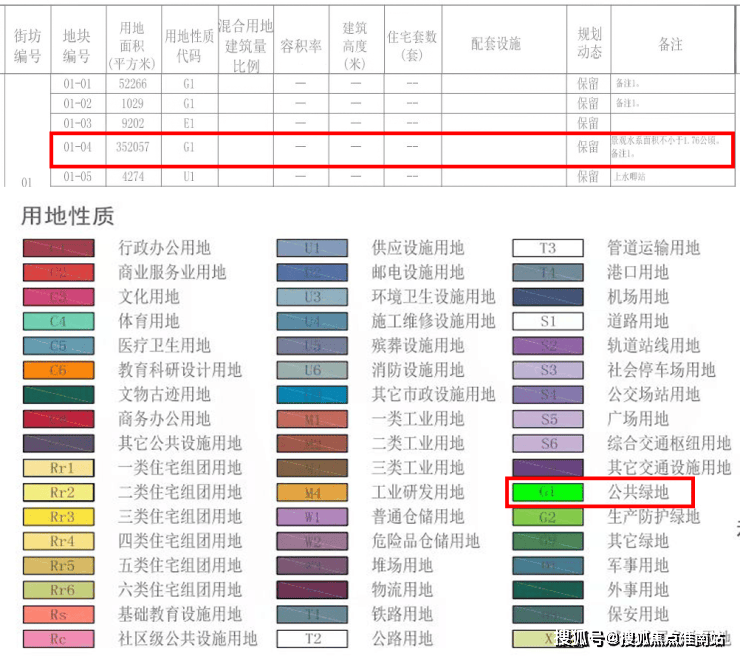 Those who carefully examine this detailed control plan can notice that the land use nature of the 01-04 plots to the west of the project is G1, and the planning interpretation of G1 in the legend is public green space, with a total area of approximately 350,000 square meters.