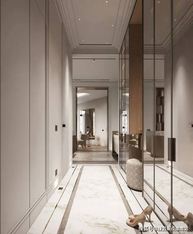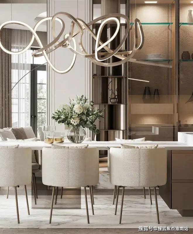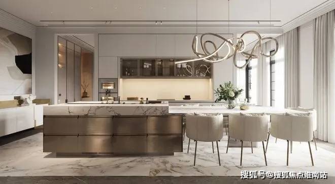 在厨房的设计中依然沿袭客厅的设计采用大理石元素,通过金属元素与大理石元素的结合来表现空间的轻奢,其中金属的岛台加上大理石台面让空间极具氛围感,让空间看上去更有层次。 未来港元启☎📞售楼处电话:400-9659-259✅✅✅