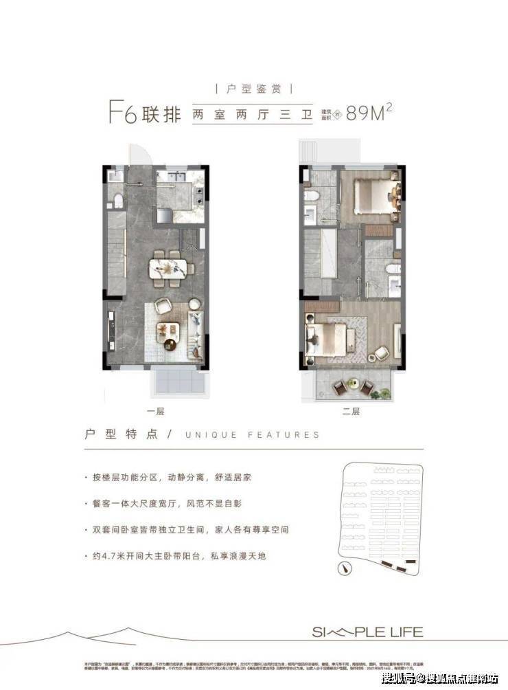 层高:洋房2.9米,联排客厅挑空约6米