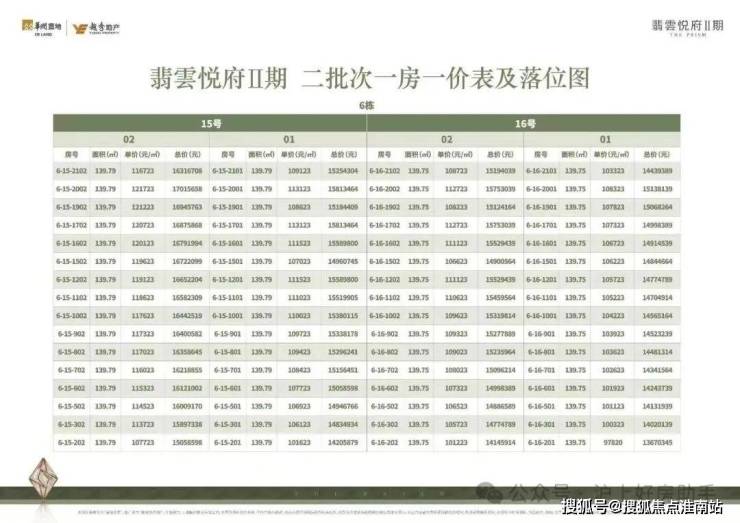 翡云悦府前期一房一价表