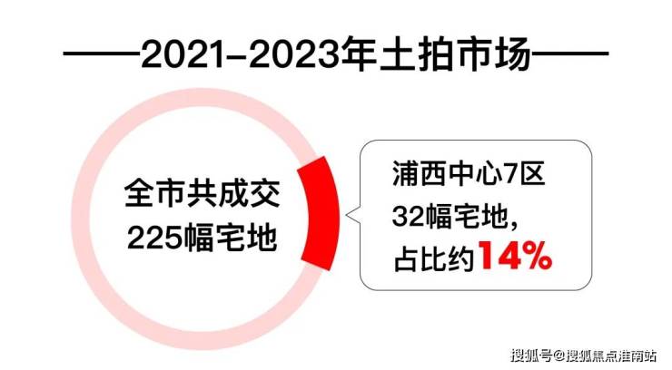 2021-2023年上海土地市场,浦西7区共有32幅宅地成功拍出,仅占比约14%。
