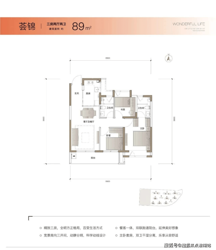 约89-120㎡全能精致户型,毛坯&精装的双重选择,3/4房2厅2卫的户型设计,匹配成长型家庭,聚合沪上品质菁英青年。