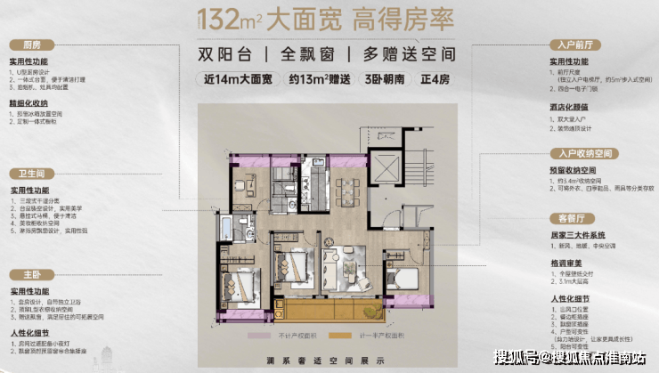 · 赠送面积:开发商额外赠送的使用空间(如飘窗、露台,部分不计入建筑面积)