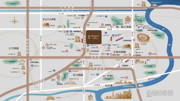 【江湾鸿玺】,坐拥地段优势,近地铁 / 商圈 / 江景 / 学校,区位稀缺性突出。