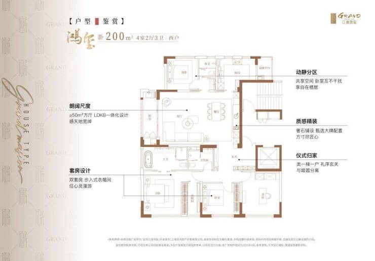 江湾鸿玺主推建面约200㎡豪装大4房,仅有32席位,总价在1500万级,或是中环旁错过不再有的“一步到位”纯改善产品。