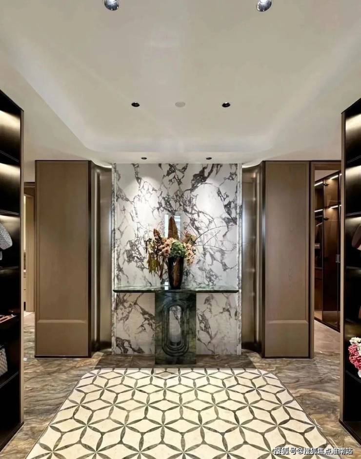 双入户大堂:B1车库门厅星空吊顶+环氧地坪,1F入户大堂,归家仪式感拉满