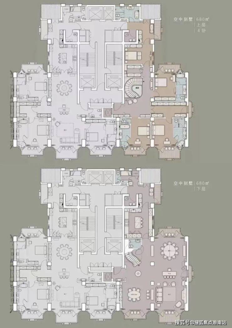 600–680㎡复式:半层或整层设计,空间层次丰富,私密性极佳