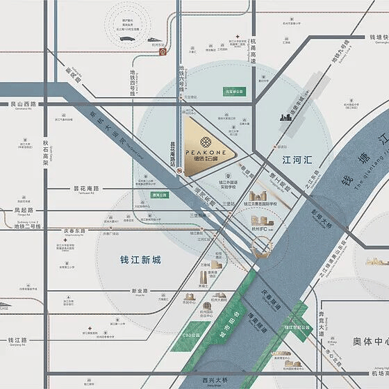 地理位置:位于上城区昙花庵路与塘工局路交叉口,紧邻地铁6号线昙花庵路站,步行约5分钟可达。项目距离在建的杭州IFC(国际金融中心)约1公里,坐拥钱江新城、江河汇、庆春三大核心商圈。