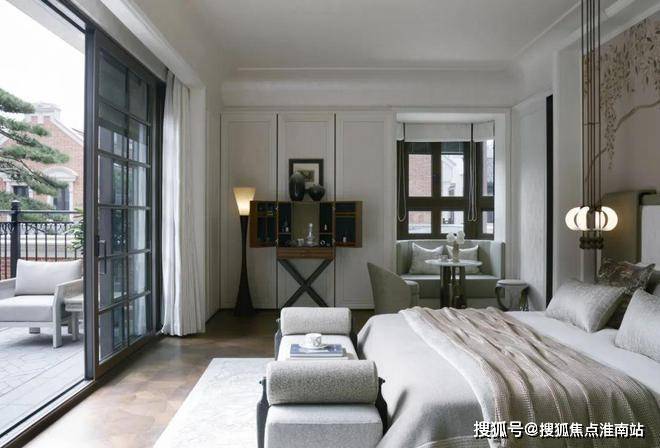 拉开主卧的双开门式深色木框门窗,任清风入室,吹得窗纱浮动,面朝婆娑起舞的树影醒来,枕着从露台撒入的月色入眠,如白居易笔下的“偶得幽闲境,遂忘尘俗心”,空间意义早已超越了物理的休憩场所,而成为精神栖息之地。