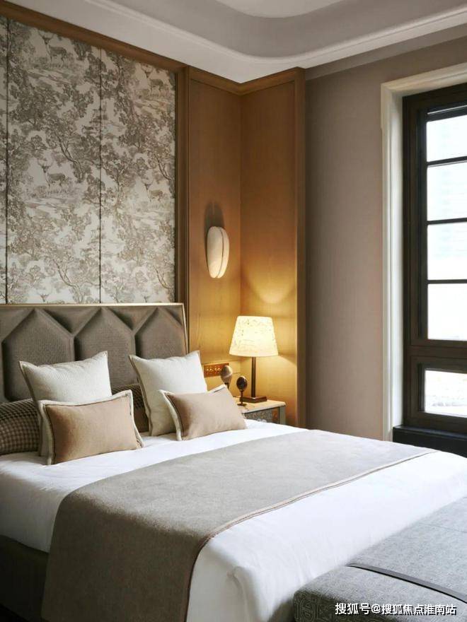 穿过一扇映照着摇曳树影的砖砌拱门,从中庭步入通向别墅区,眼前的大宅铺陈出一室典雅深沉。禅意园景、素雅石墙、朦胧灯影,饱含底蕴的装饰艺术风格和锐意的现代设计碰撞出耐人寻味的动态平衡,同时传达出融贯古今东西的折衷风格。