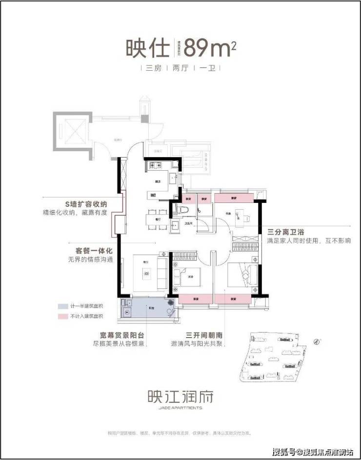 作为华润置地海派3.0作品,映江润府的卷,更在于其硬核的产品力,尤其在户型的设计上,堪称卷到极致。映江润府全盘仅规划89和103两种户型,每个都堪称王炸。