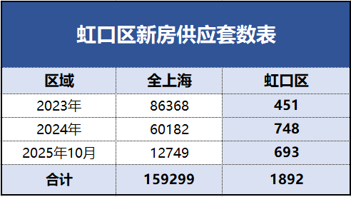 2023年至2025年10月,整个虹口区只有9盘、1900套房源入市,占全市总供应的1.1%,是浦西供应垫底的存在,这让无数想要置业虹口的人买房无门。