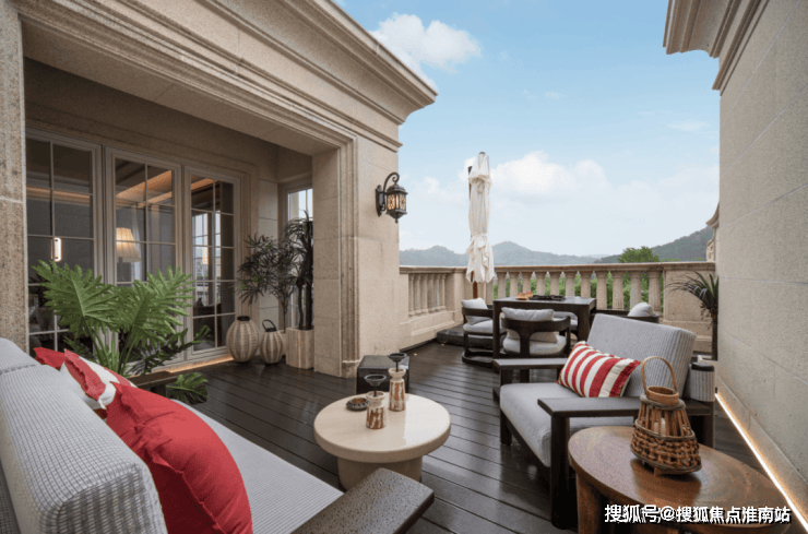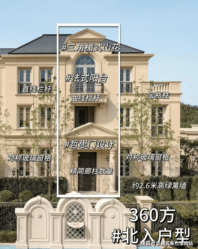 1. 色调纯净,度假美学:立面以浅暖米黄石材为底,点缀金属、玻璃,焕新法式奢华艺术气质。罗马柱与宝瓶柱阵列、隽永雕花,凝练地中海浪漫神韵,恢宏典雅。